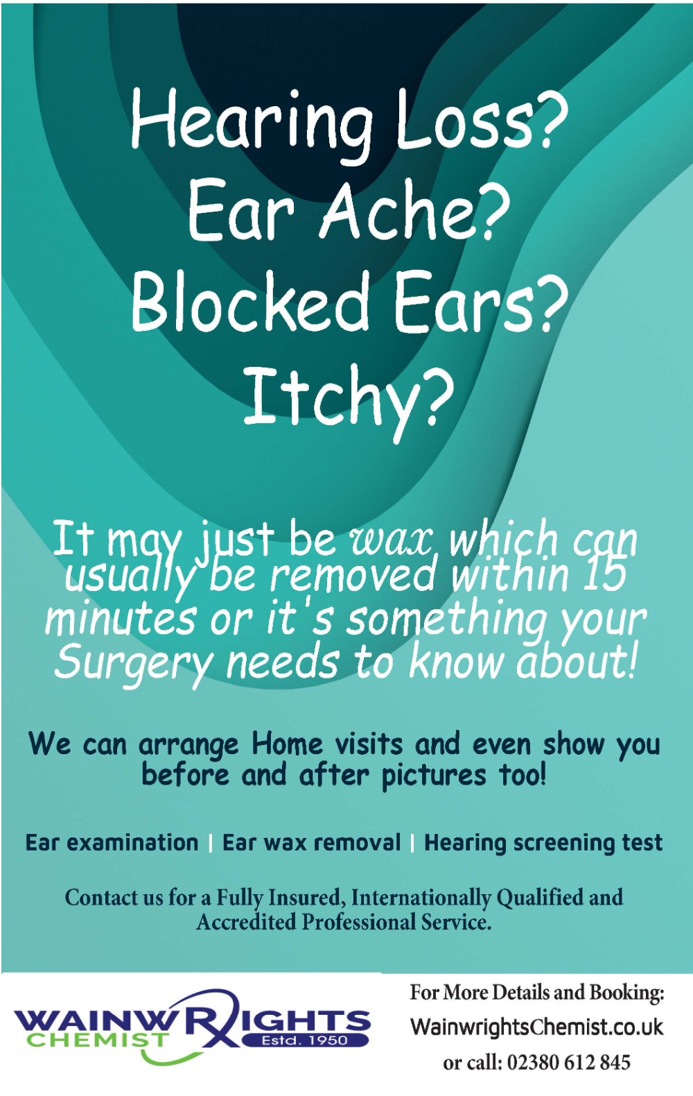 We are pleased to announce our new fully insured and accredited Micro-Suction Ear Wax Removal Service, available for home visits and at your pharmacy.